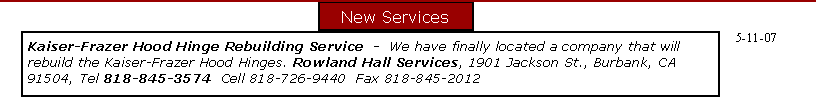 CAUTION ALERT: It has come to my attention that a new vendor is fabricating partial floor panels and outer rocker panels for the full-size Kaisers and has also attempted to knock-off (copy) my Henry-J Sub-Frame Patch Panel Kit. (inner rocker frame) and is offering his items on eBay at much reduced prices. I attempted to work with this vendor, at no cost to him, to make much-needed